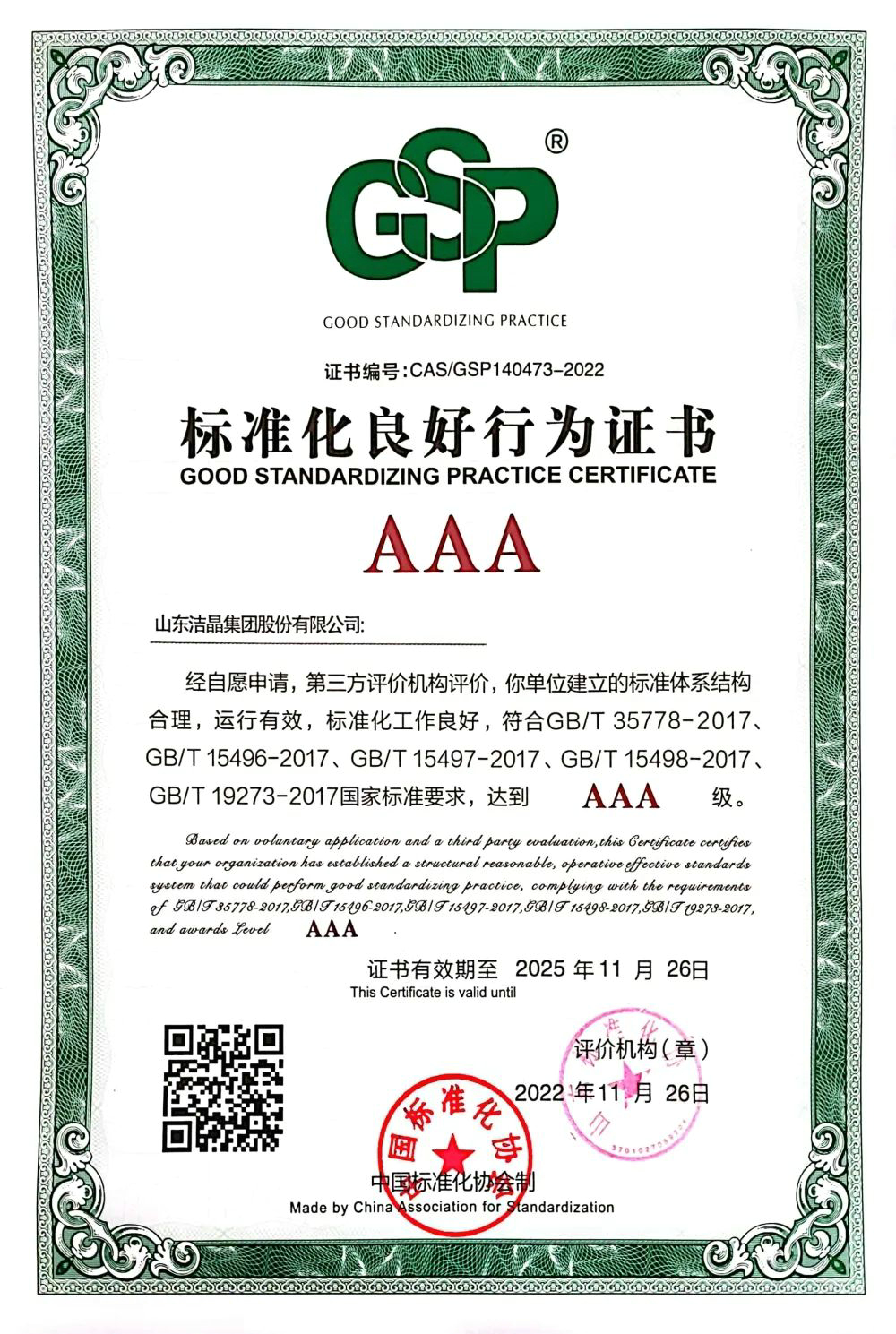 2022年11月26日,经前期申报及第三方评价机构评价审核,注册即送28元体验金集团获得AAA级标准化良好行为证书。
